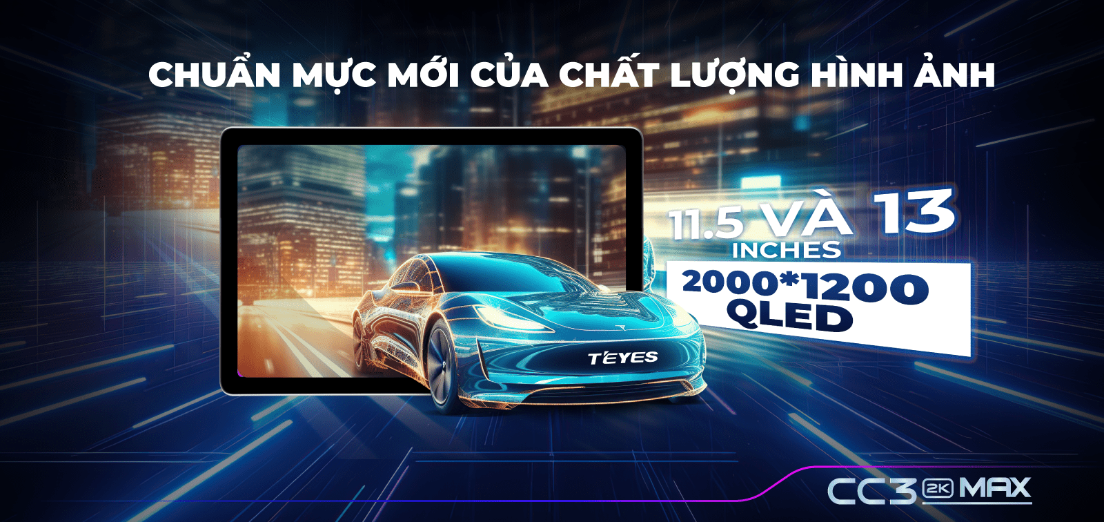 Màn hình Teyes CC3 2K MAX mới kích thước cực đại trong thế giới màn hình ô tô. Với màn hình rộng 11.5 inch hoặc 13 inch, sử dụng công nghệ QLED cho hình ảnh sắc nét, sống động. Độ phân giải màn hình lên đến 2K (2000 x 1200 pixels) giúp mọi trải nghiệm hiển thị tối ưu nhất ngay từ lần chạm đầu tiên.