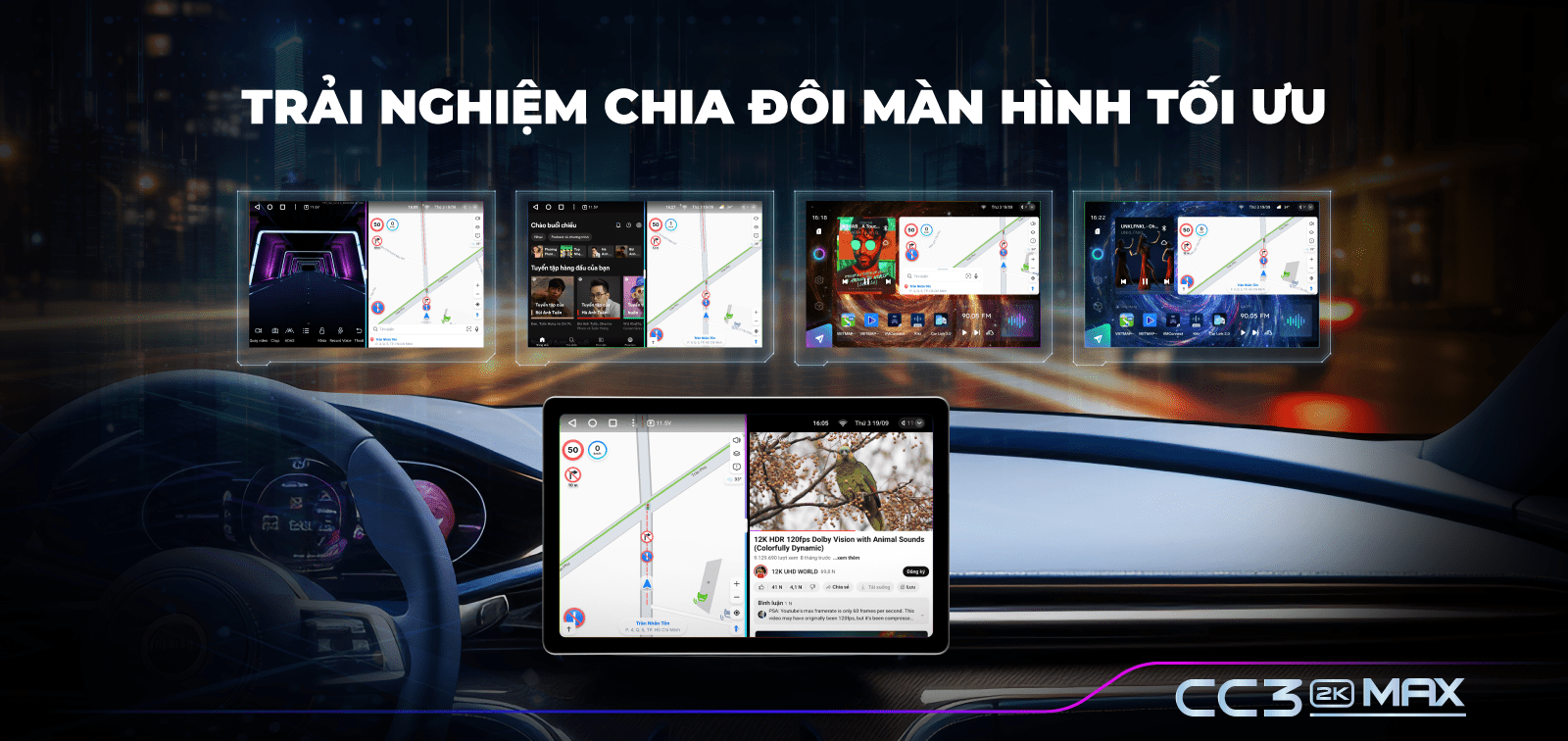 Màn hình Teyes CC3 2K MAX nổi bật với giao diện chia đôi màn hình, cho phép hiển thị song song 02 ứng dụng một cách linh hoạt và hiệu quả. Tính năng này giúp người dùng dễ dàng sử dụng nhiều ứng dụng cùng lúc, từ đó nâng cao hiệu quả giải trí và làm việc trên xe tạo cảm giác thăng hoa cho mọi hành trình.