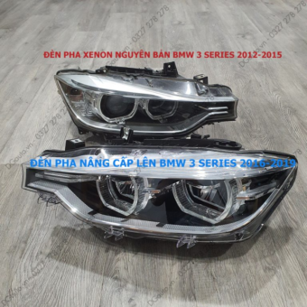Đèn BMW Xenon for 3 series 2012-2015: sử dụng 1 cụm pha/cos xenon, 1 cụm bi giả không có tác dụng chiếu sáng ==> 1 sáng 1 chột. Đèn xin nhan halogen, vòng angel daylight công nghệ cũ, dạng ống tròn, hình tròn, còn về khuân đèn giữa 2 đời hoàn toàn giống nhau.